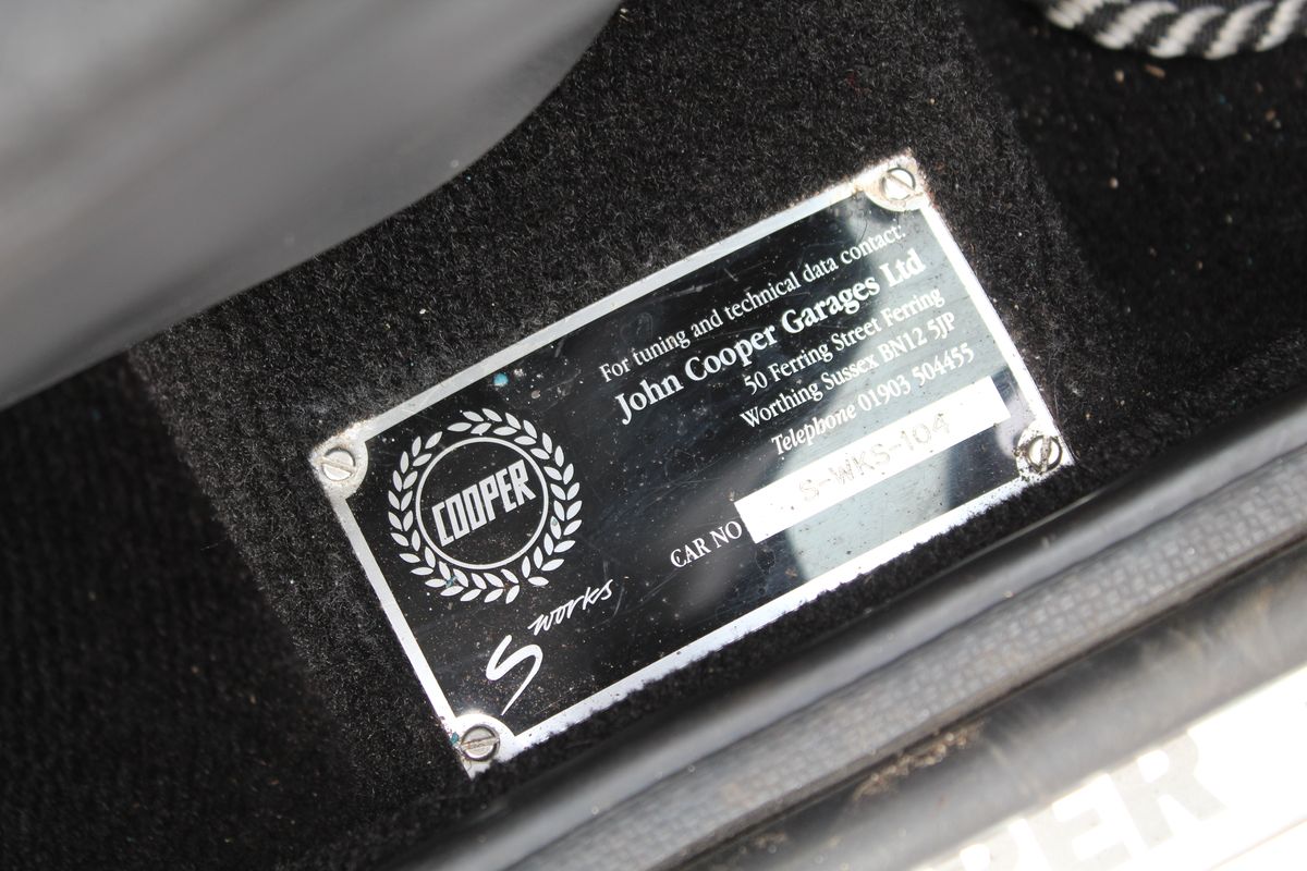 Supplied new by John Cooper Garages in Sussex this example is accompanied by a Mini Register Certificate, original handbooks and information books, where the S Works conversion was carried out. The history file provides a clear and well-documented record of the car’s life, adding confidence for prospective buyers. All servicing in The Vendor's ownership has been completed by Mini Motor Sports Centre of Sussex due to the fact that it is an ex John Cooper Garages employee that runs it.